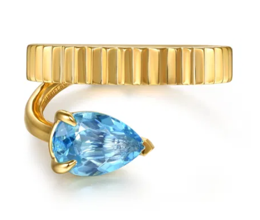 Gabriel & Co - Color Collection - 14KT Yellow Gold Pear Shaped Swiss Blue Topaz...
