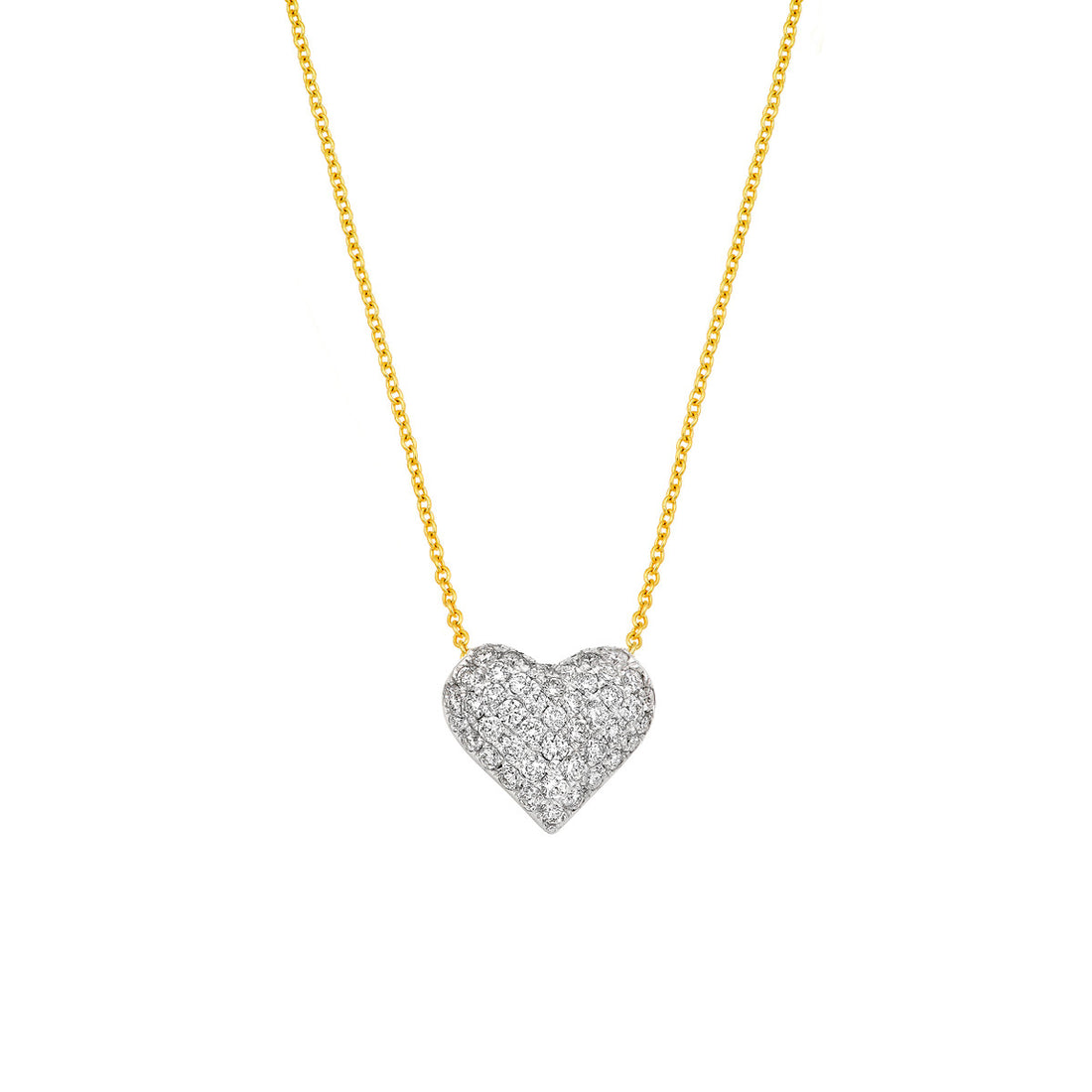 14KT Two-Tone 18" Heart Shaped Pave Diamond Heart Necklace, Dia: 0.33ct t.w.