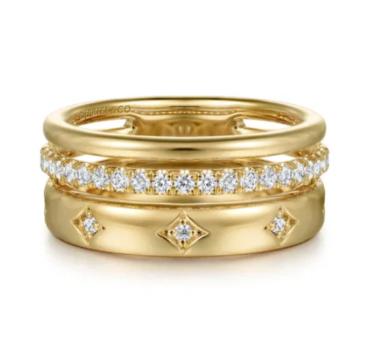 Gabriel & Co - Contemporary Collection - 14KT Yellow Gold Diamond Easy Stackable Ring, Dia:...