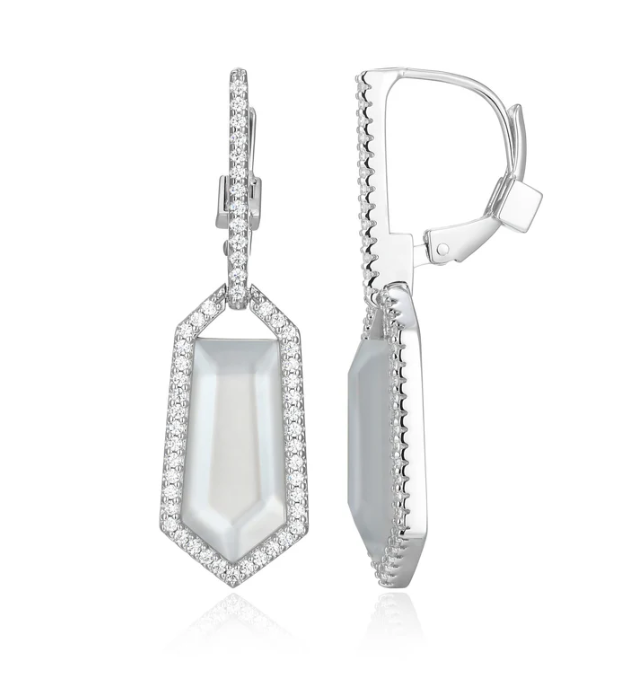ELLE - Celeste Collection - Sterling Silver Rhodium Plated Modern Drop Earrings