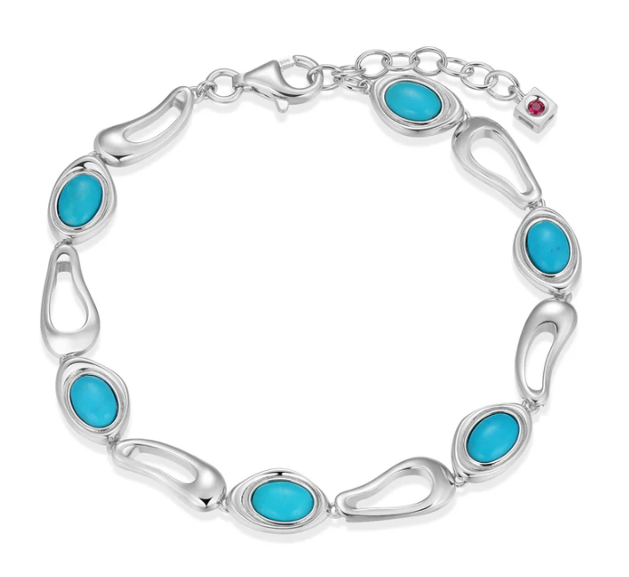 ELLE - Oasis Collection - Sterling Silver Rhodium Plated 6.75"+1.25" Azure Turquoise Bracelet