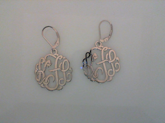 Sterling Silver Monogram Lever Back Earrings 25mmKFL