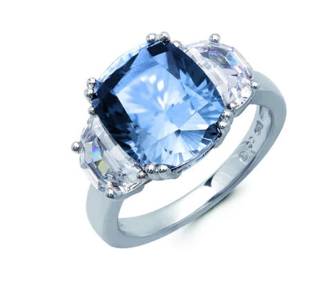 Sterling Silver Blue Quartz & CZ Cocktail Ring Finished in Pure Platinum, 11.90ct t.w., Size...