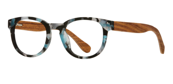 Astrid Blue Light Collection - Matte Blue Tortoise & Walnut Wood Blue Light Readers (+1.50)