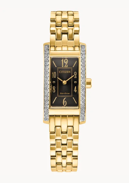 CITIZEN - PETITE PALIDORO - Ladies Gold- Stainless Steel Eco-Drive Watch with Black Dial, Curved...