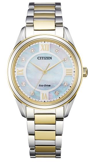 CITIZEN - AREZZO - Ladies Two-Tone Stainless Steel Eco-Drive Watch with Mother-of-Pearl Dial, Roman Numerals...