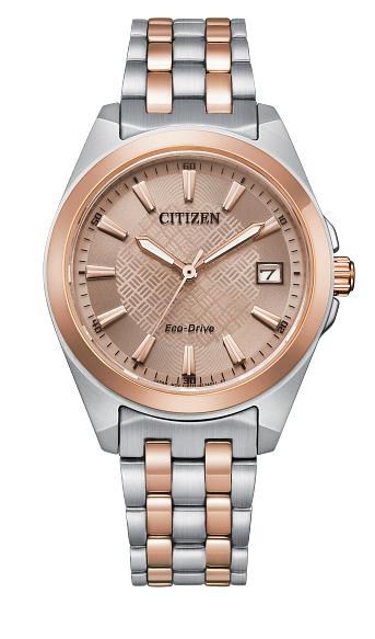 CITIZEN - PEYTEN - Ladies Two-Tone Rose Gold Stainless Steel Eco-Drive Watch with Light Brown...