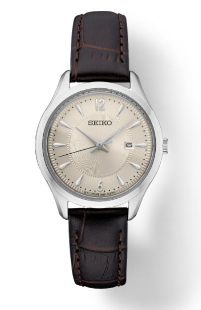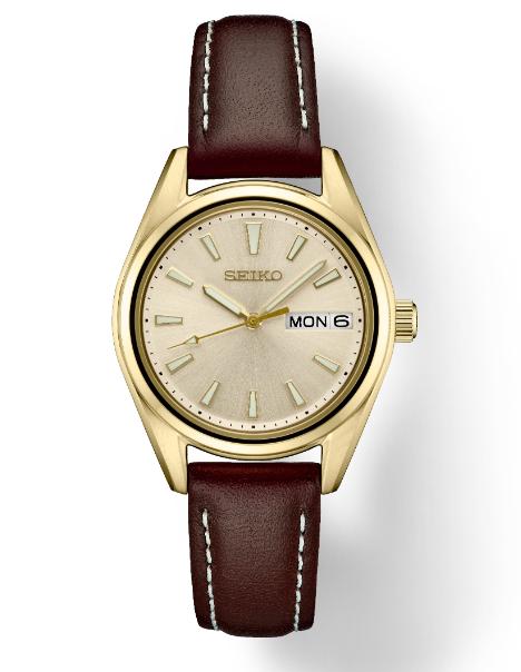 SEIKO - ESSENTIALS - Ladies Quartz Watch with Light Champagne Sunray Dial with Gold Accents,...