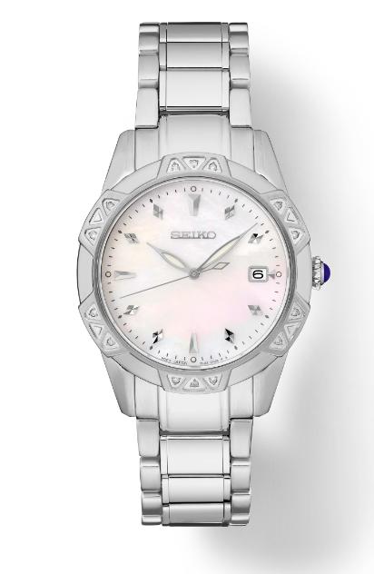 SEIKO - DIAMOND - Ladies Stainless Steel Quartz Watch with Mother-of-Pearl Dial, Date Display, Sapphire...