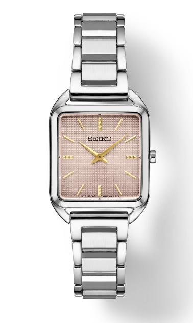 SEIKO - ESSENTIALS - Ladies Stainless Steel Quartz Watch with Mauve Pink Dial with Die-Stamped...