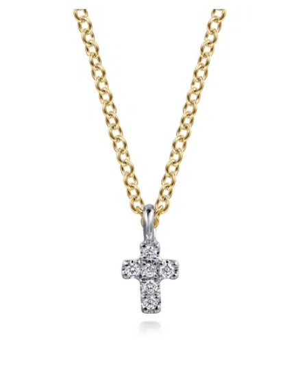 Gabriel & Co - Lusso Collection - 14KT Yellow & White Gold 17.5" Diamond Cross Pendant Necklace, Dia: 0.03ct t.w., Serial No: S2163717