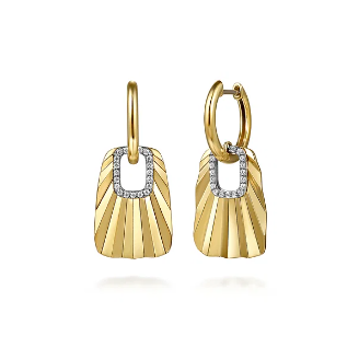 Gabriel & Co - Contemporary Collection - 14KT White & Yellow Gold Diamond & Diamond Cut Huggie Drop Earrings, Dia: 0.19ct t.w., Serial No: S2013873