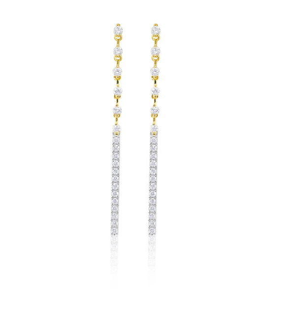 MeiraT - 14KT Two-Tone Diamond Dangle & Bar Earrings, Dia: 0.48ct t.w.