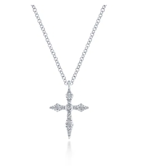 Gabriel & Co - Kaslique Collection - 14KT White Gold 17.5" Sculpted Diamond Cross Pendant Necklace, Dia: 0.09ct t.w., Serial No: S2165249