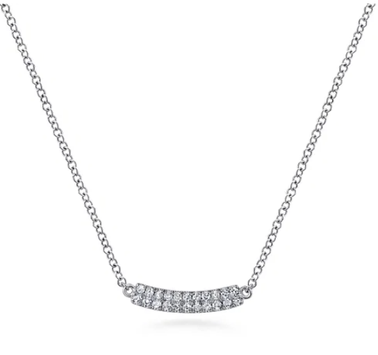 Gabriel & Co - Lusso Collection - 14KT White Gold 17.5" Curved Pave Diamond Bar Necklace, Dia: 0.11ct t.w., Serial No: S2165248