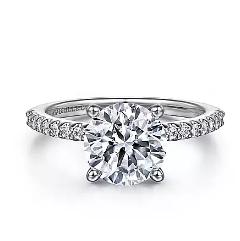 Gabriel & Co - Classic Collection - 14KT White Gold Diamond Engagement Ring with Round CZ Center, CZ: 3.47ct., Dia: 0.15ct., Size 6.5, Serial No: S1749842