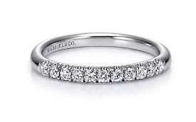Gabriel & Co - Classic Collection - 14KT White Gold 11 Stone French Pave Diamond Wedding Band, Dia: 0.23ct t.w., Size 6.5, Serial No:S1730864