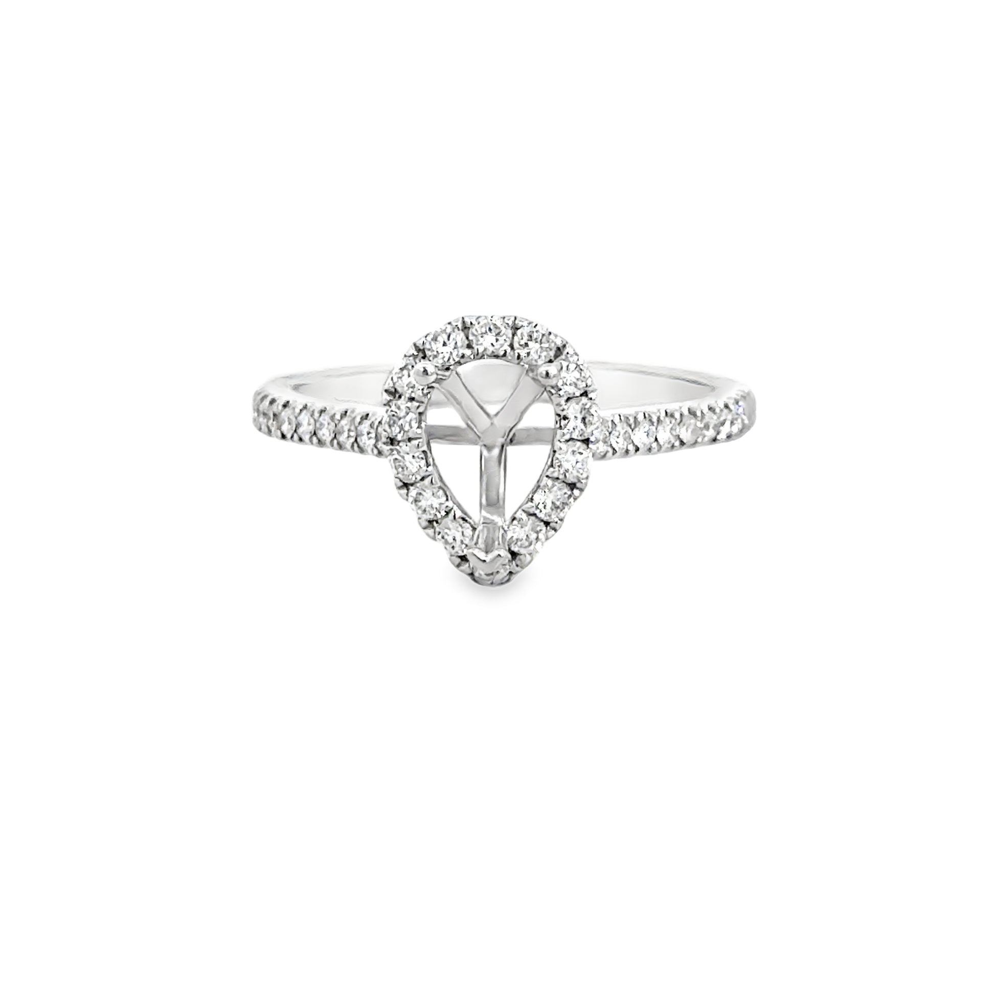 14KT White Gold Semi-Mount Pear Shaped Halo Diamond Engagement Ring, Dia: 0.38ct t.w., Size 6.5