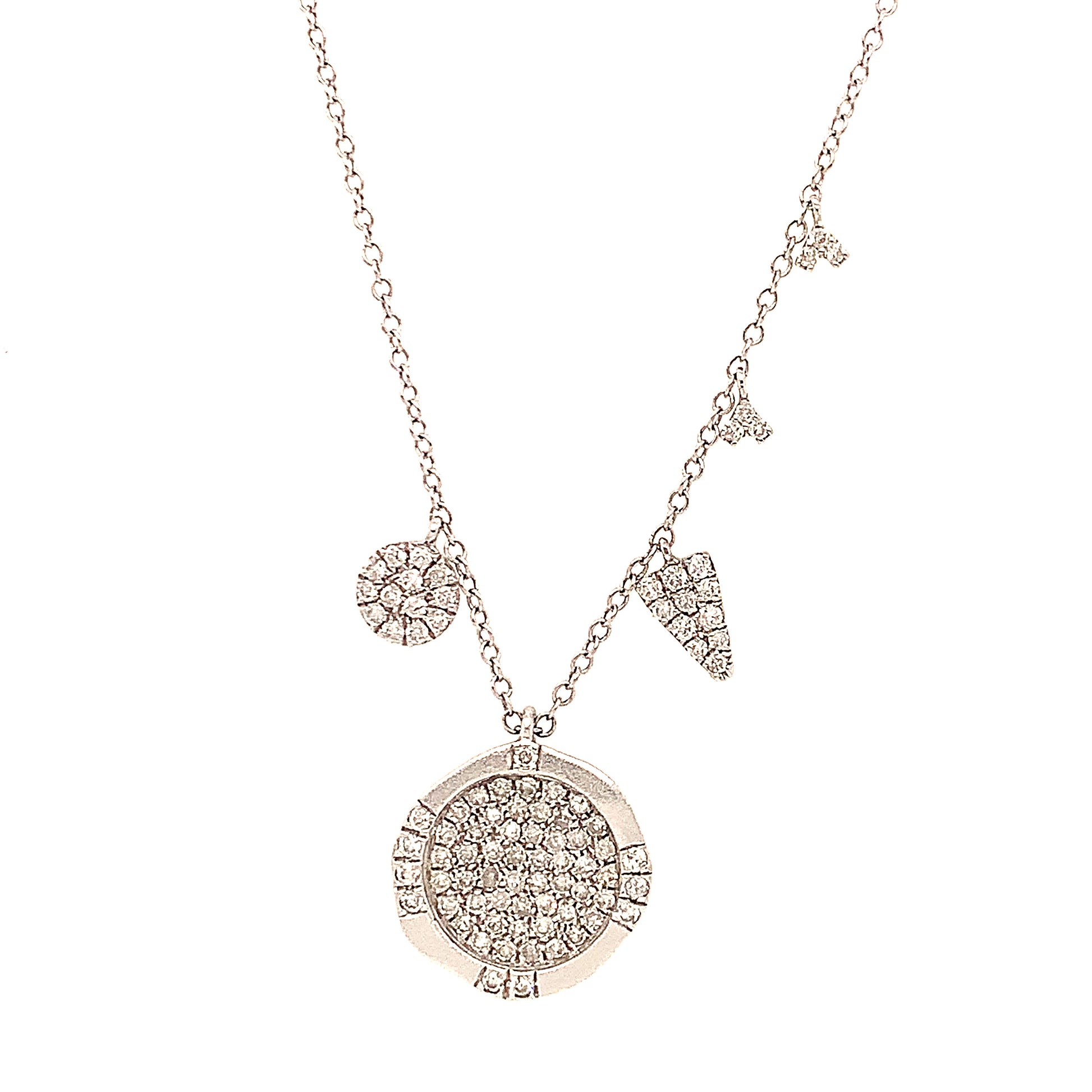 MeiraT - 14KT White Gold 16"+2" Pave Diamond Necklace w/Off-Centered Charms, Dia: 0.52ct t.w.