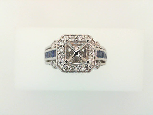 14KT White Gold Semi-Mount Sapphire and Diamond Ring, Dia: 0.46ct & Sapphire wt. 0.55ct., Size 6.5