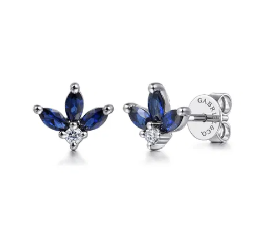 Gabriel & Co - Color Collection - 14KT White Gold Diamond & Blue Sapphire Stud Earrings, SA: 0.60ct., Dia: 0.05ct t.w., Serial No: S2111398
