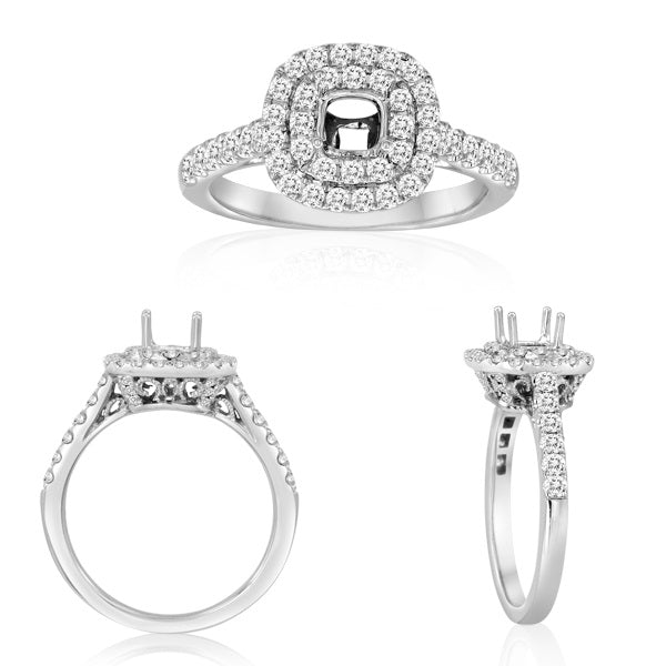 14K White Gold 0.61ct. Double Halo Diamond Semi-Mount Ring