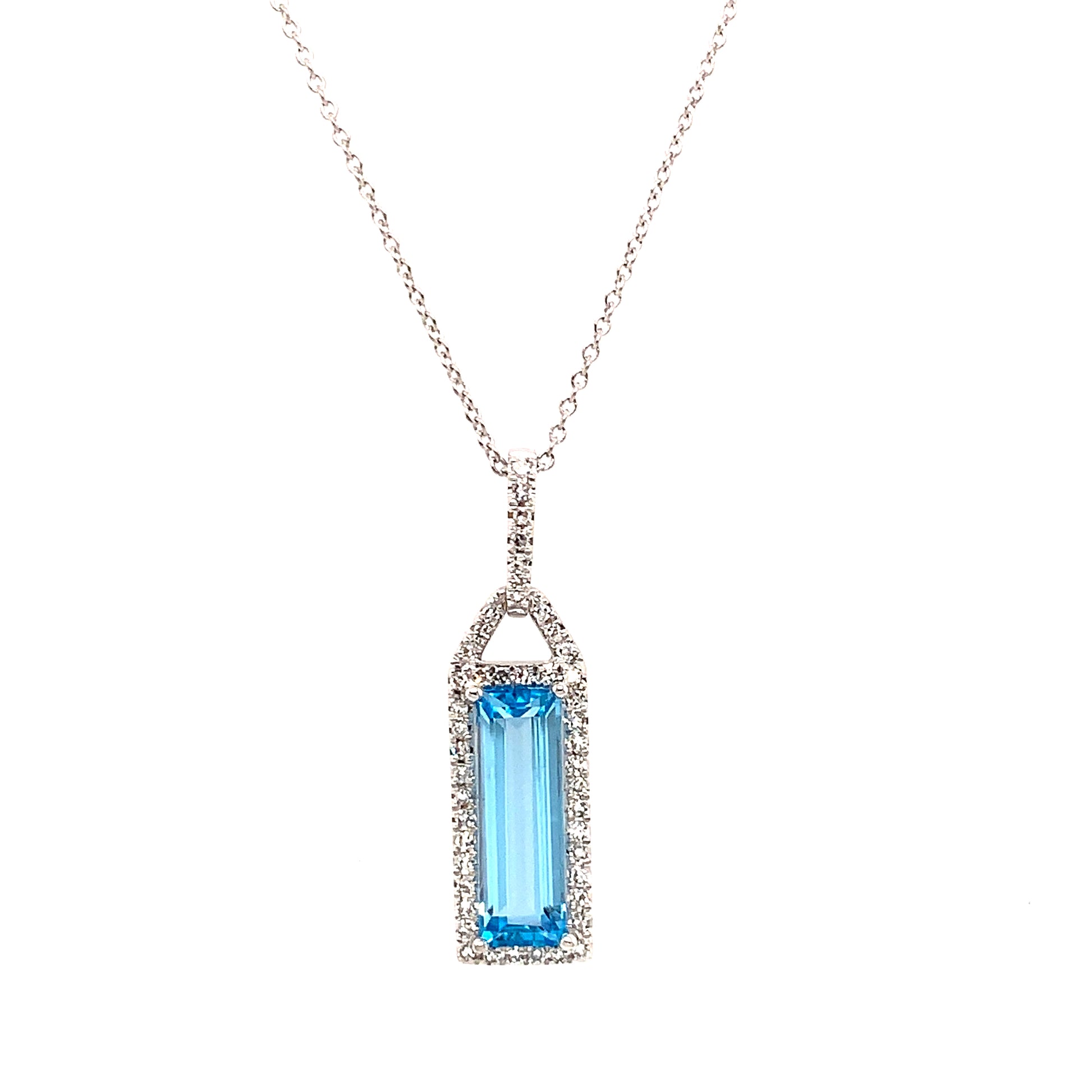 14KT White Gold Blue Topaz & Diamond Pendant with 16" Cable Chain, Dia: 0.12ct t.w.