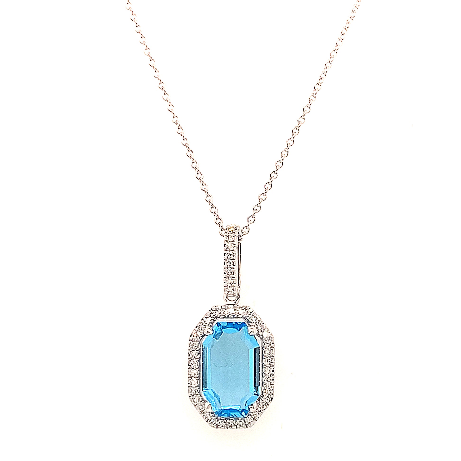 14KT White Gold Blue Topaz & Diamond Pendant with 18" Cable Chain, BT: 2ct., Dia: 0.14ct t.w.