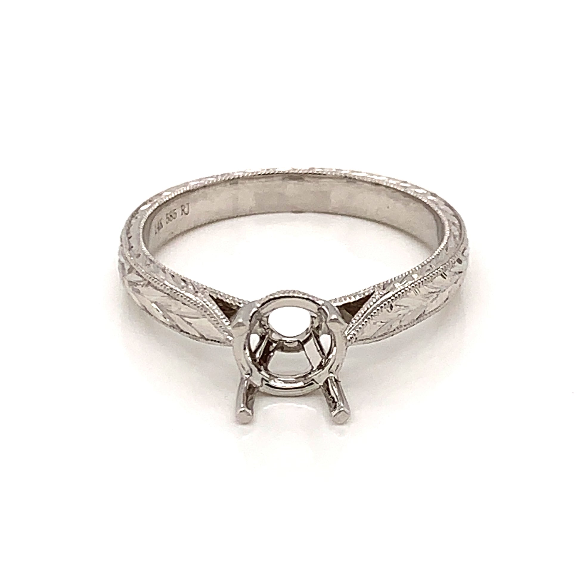 14KT White Gold Semi-Mount Ring with Engraved & Milgrain Details, Size 6.5
