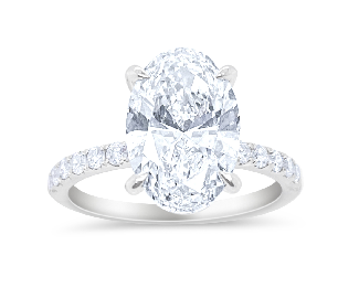 MeiraT - 14KT White Gold Lab Grown Diamond Engagement Ring with Oval Shaped in Center, LG Dia: 3.07ct., Side LG Rds: 0.25ct t.w., Size 6.5