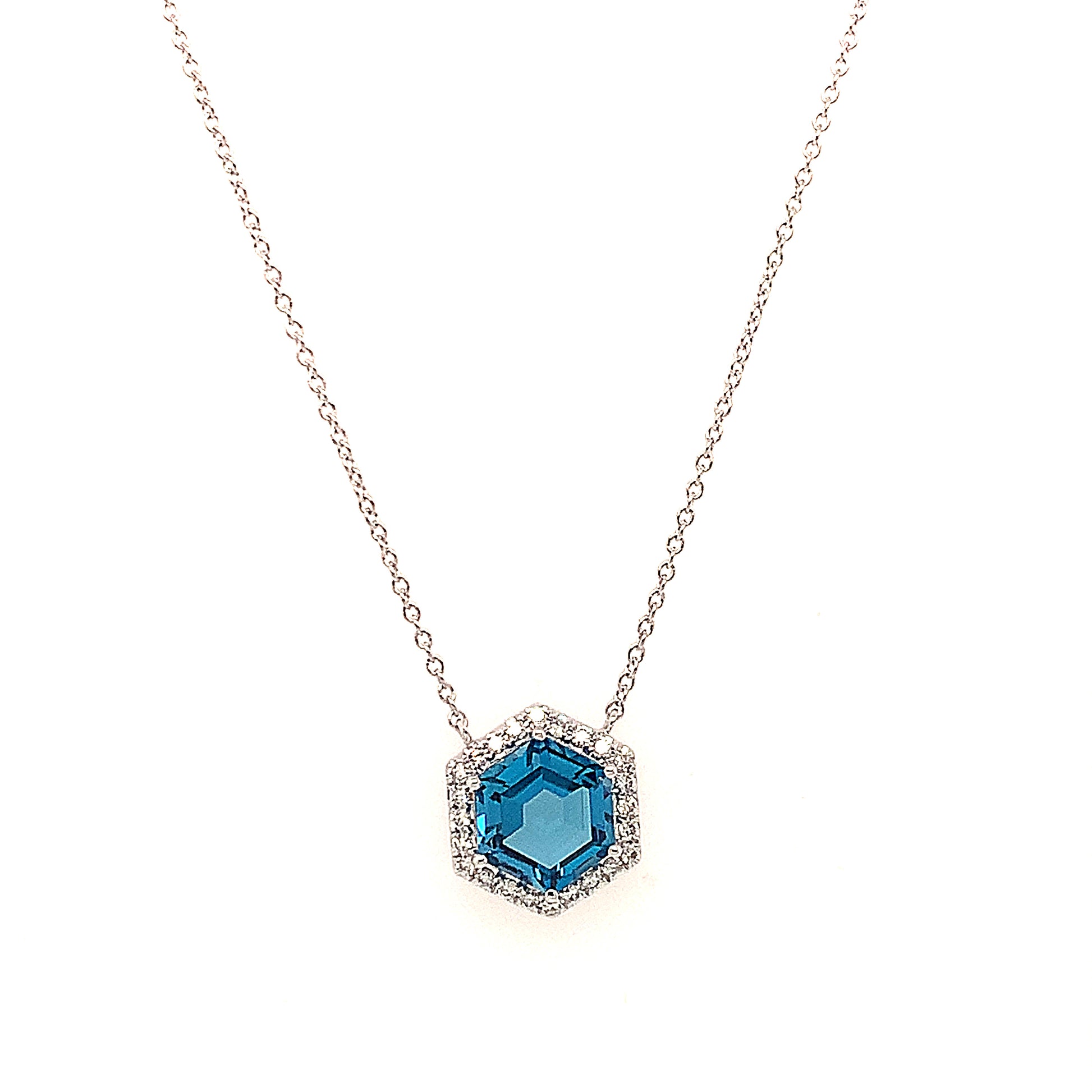 14KT White Gold 18" London Blue Topaz & Diamond Necklace, LBT: 1.5ct., Dia: 0.12ct.