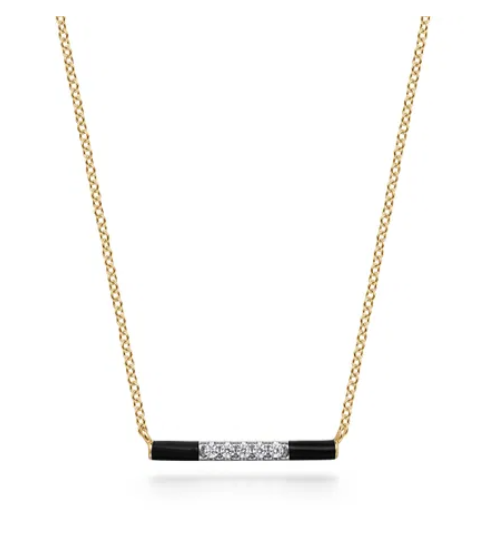 Gabriel & Co - Lusso Collection - 14KT Yellow Gold 17.5" Diamond Bar Necklace with Black Enamel, Dia: 0.06ct t.w., Serial No: S2165193