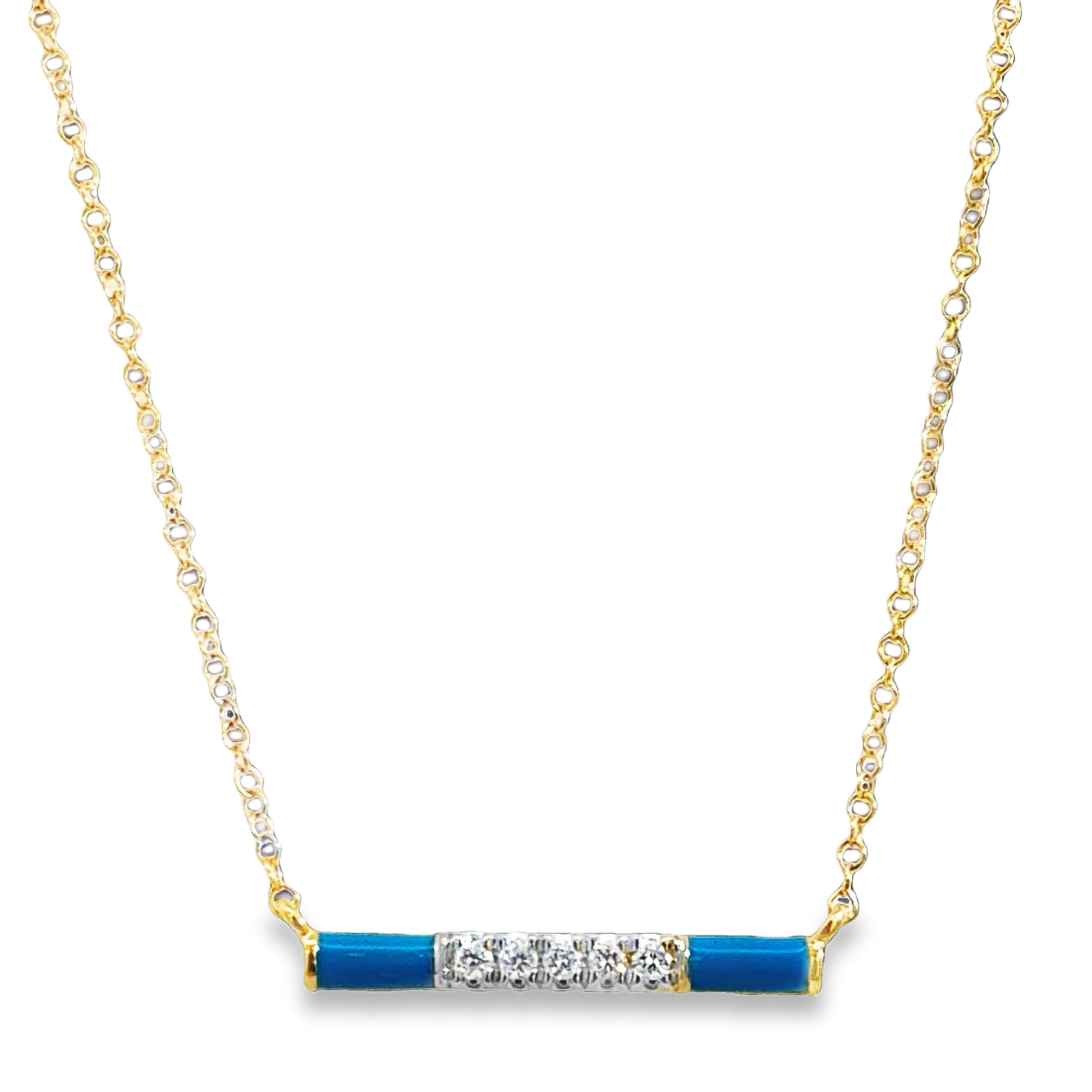 Gabriel & Co - Lusso Collection - 14KT Yellow Gold 17.5" Diamond Bar Necklace with Dusk Blue Enamel, Dia: 0.06ct t.w., Serial No: S2165192