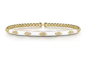 Gabriel & Co - Bujukan Collection - 14KT Yellow Gold 6.25" Bujukan Beads & Diamond Split Bangle with White Enamel, Dia: 0.11ct t.w., Serial No: S1982106