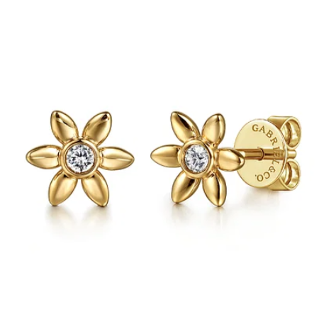 Gabriel & Co - Contemporary Collection - 14KT Yellow Gold White Sapphire Floral Stud Earrings, WS: 0.11ct t.w., Serial No: S2163746