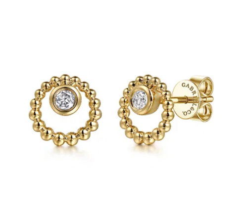 Gabriel & Co - Bujukan Collection - 14KT Yellow Gold White Sapphire Stud Earrings, WS: 0.14ct t.w., Serial No: S2149813