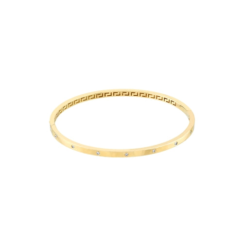 14KT Yellow Gold Diamond Square Tube Bangle Bracelet with Greek Key Interior, Dia: 0.16ct t.w.