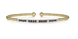 Gabriel & Co - Bujukan Collection - 14KT Yellow Gold 6.25" Blue Sapphire & Diamond Split Bangle, SA: 0.31ct., Dia: 0.09ct t.w., Serial No: S1852866