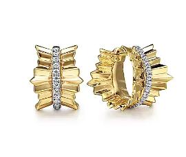 Gabriel & Co - Contemporary Collection - 14KT Yellow Gold 15mm Diamond Huggie with Diamond Cut Texture, Dia: 0.31ct t.w., Serial No: S1520789