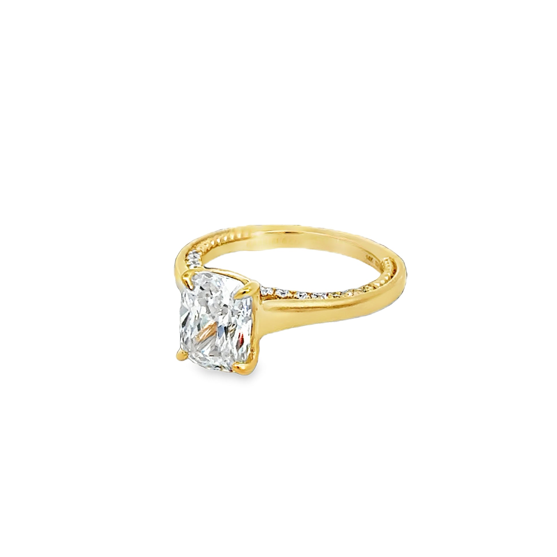 Gabriel & Co - Classic Collection - 14KT Yellow Gold Semi-Mount Diamond Engagement Ring with Elongated Cushion Shaped CZ in center, Dia: 0.35ct t.w., Size 6.5, Serial No: S2165233