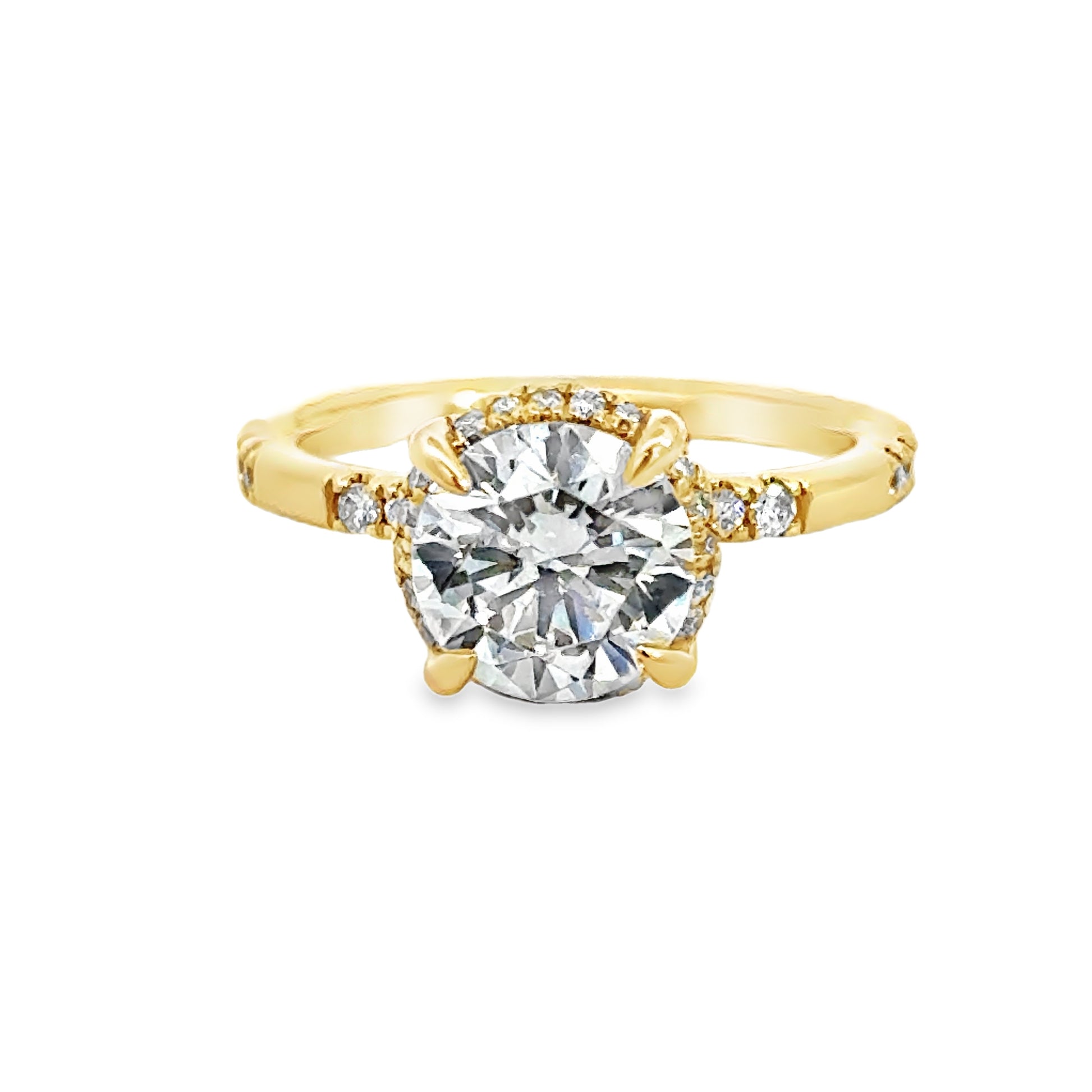 Gabriel & Co - Contemporary Collection - 14KT Yellow Gold Diamond Engagement Ring with Round CZ Center, CZ: 2ct., Dia: 0.36ct t.w., Size 6.5, Serial No: S1935836