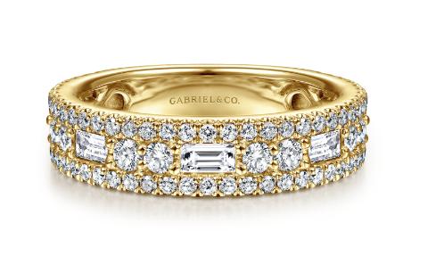 Gabriel & Co - Contemporary Collection - 14KT Yellow Gold Round & Baguette Diamond Anniversary Band, Dia: 1.39ct t.w., Size 6.5, S1749867