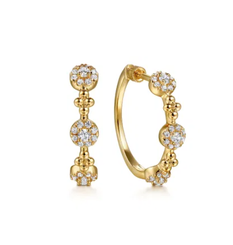 Gabriel & Co - Bujukan Collection - 14KT Yellow Gold Bujukan Diamond Cluster Classic Hoop Earrings, Dia: 0.54ct t.w., Serial No: S2159358
