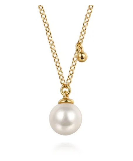 Gabriel & Co - Bujukan Collection - 14KT Yellow Gold 17.5" Pearl Drop Necklace, Serial No: S1919645