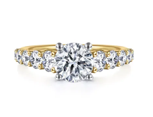 Gabriel & Co - Classic Collection - 14KT Yellow Gold Semi-Mount Diamond Engagement Ring with CZ Center, Dia: 0.99ct t.w., Size 6.5, Serial No: S2165236