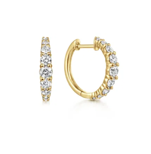 Gabriel & Co - Lusso Collection - 14KT Yellow Gold 15mm Classic Diamond Huggie Earrings, Dia: 1.02ct t.w., Serial No: S2159651