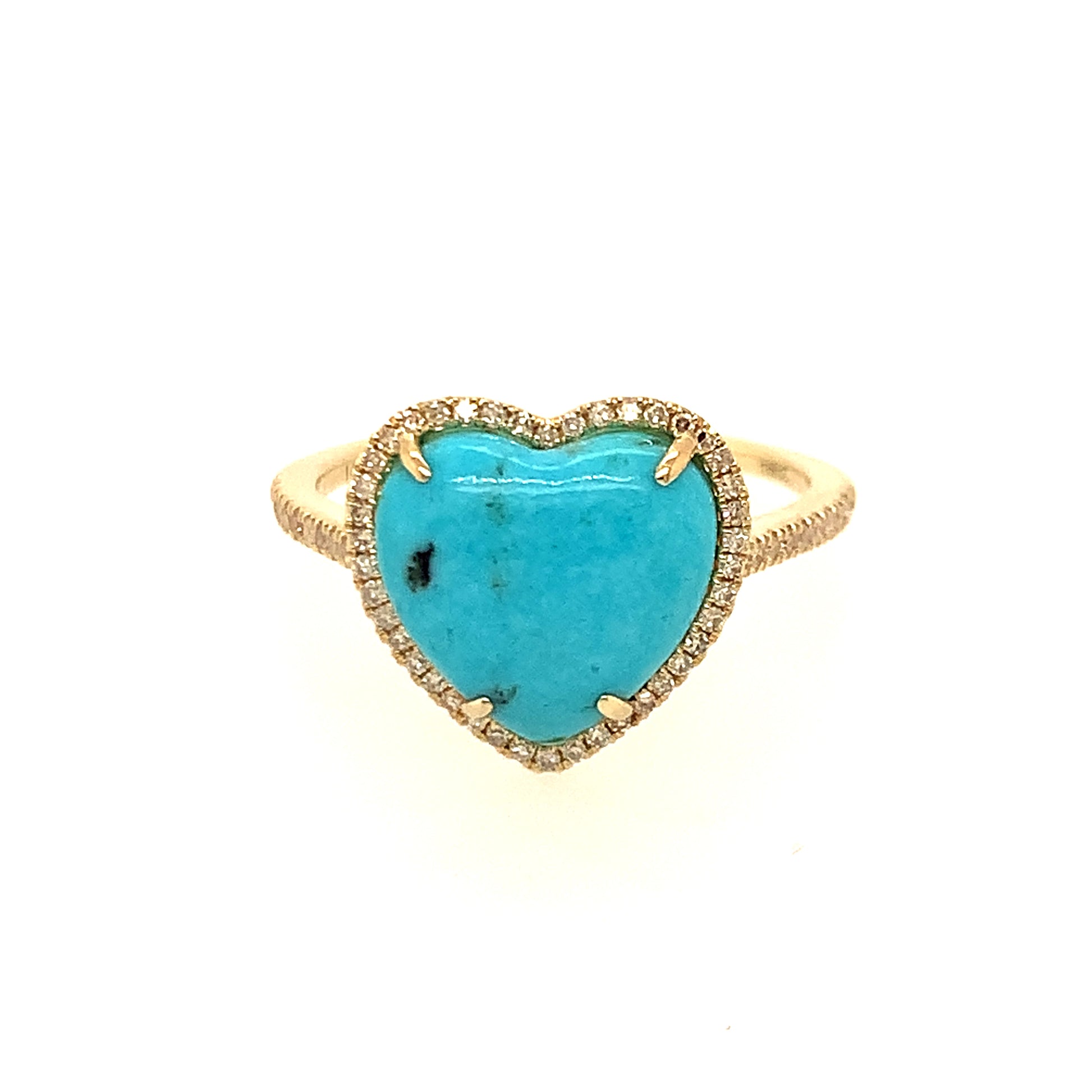 MeiraT - 14KT Yellow Gold Heart Shaped Turquoise & Diamond Ring, Col: 2.52ct., Dia: 0.16ct t.w., Size 6.5