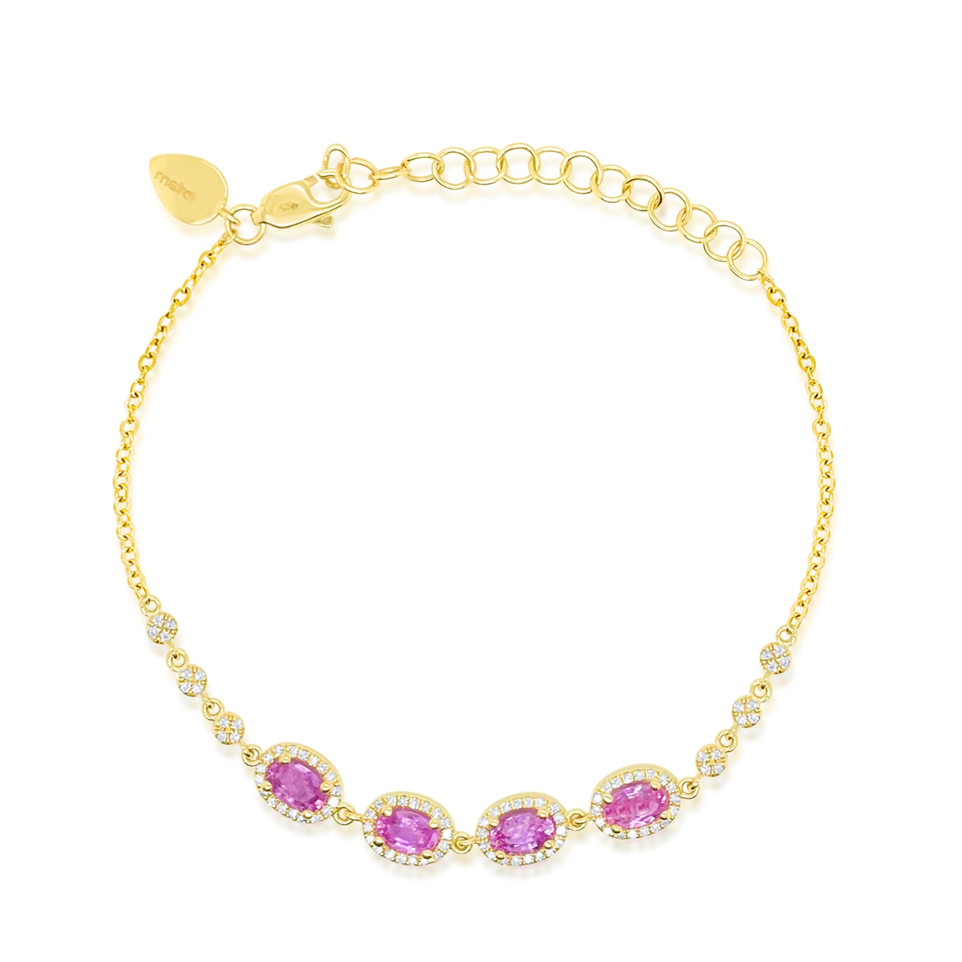 MeiraT - 14KT Yellow Gold 7" Pink Sapphire & Diamond Bracelet, PS: 1.20ct., Dia: 0.22ct t.w.