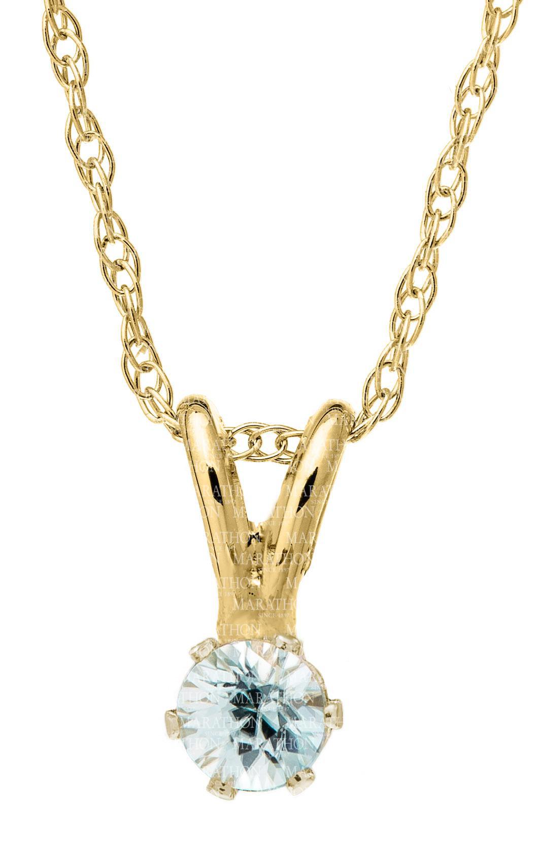 14KT Yellow Gold 3mm Blue Topaz Pendant with 15" Rope Chain