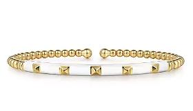 Gabriel & Co - Bujukan Collection - 14KT Yellow Gold 6.25" Bujukan Beads & Pyramid Split Bangle with White Enamel, Serial No: S2120718